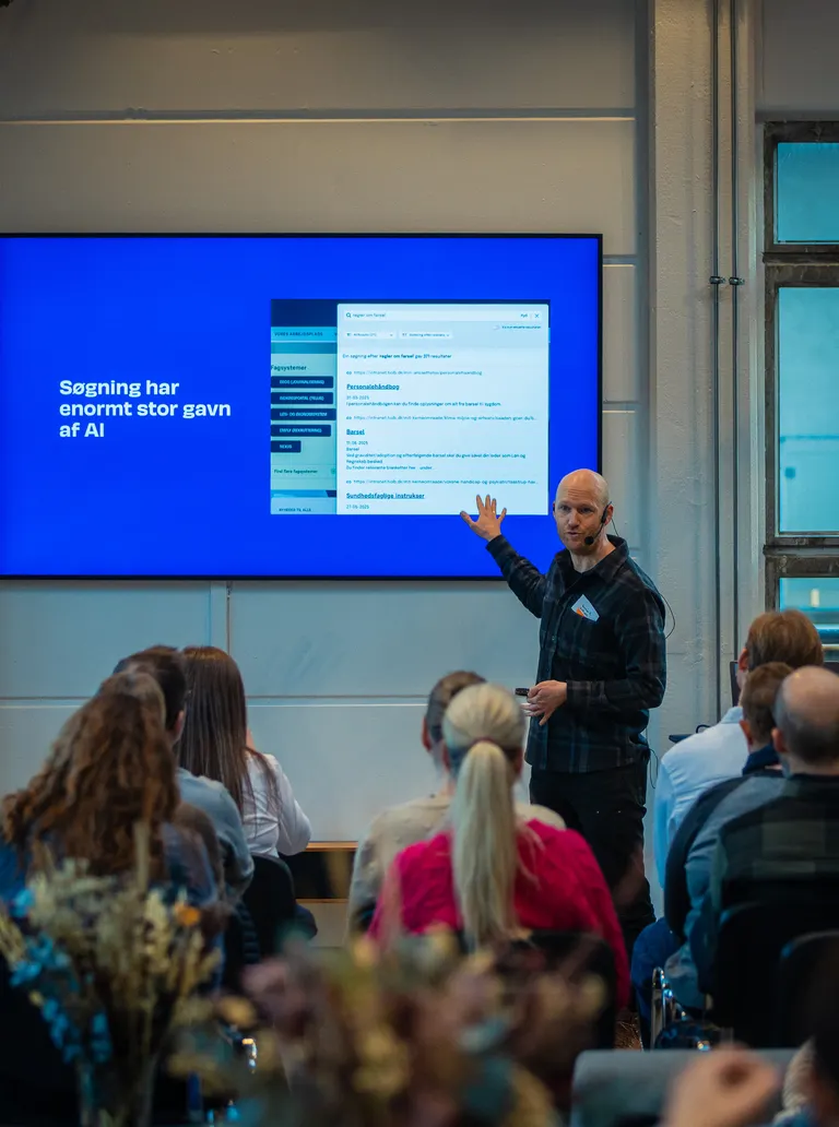 Dagens oplæg belyste, hvordan man arbejder systematisk med succesdefinition, målgrupper, governance og indhold – og hvordan AI kan være med til at gøre viden lettere at finde og anvende i hverdagen. På highlight-siden har vi samlet de centrale pointer fra hvert oplæg, så du hurtigt kan danne dig et overblik over dagens vigtigste indsigter.